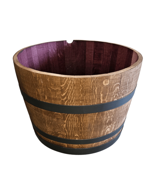 Sud sloužil na zrání vína, vnitřek je tedy zabarven červeně - tím je zakonzervován pro mnohaletou funkčnost a dubové dřevo zajišťuje jeho těsnost.