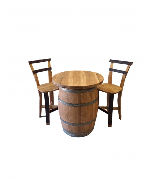 Dekorační sud Bordeaux RUSTIC v setu se stylovými barovými židlemi a masivní deskou.