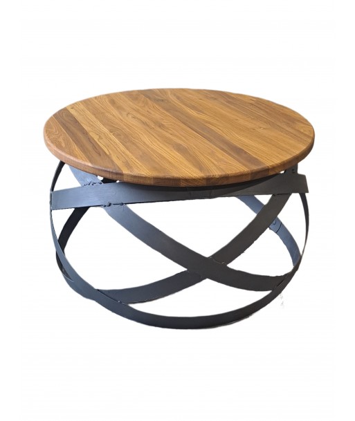 Sud i židle (aktuálně jsou naskladněny židle s jedním prknem v opěrné části) jsou ošetřeny olejovým nátěrem v dubovém tónu a rustikální vzhled podtrhne masivní široká deska o průměru 80 cm.