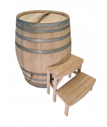 Barriquefass aus Holzeiche für Regenwasser mit einem Volumen von 225 L. Stilvoller, origineller und praktischer Helfer zum Auffangen von Regenwasser.