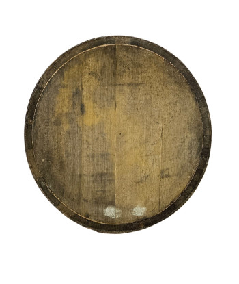 Sowohl das Fass als auch der Stuhl sind mit einem ölgetönten Eichenfinish behandelt, und der rustikale Look wird durch die massive 80 cm durchmessende Platte betont. Die Reifen sind mit schwarzer Schmiedefarbe lackiert.