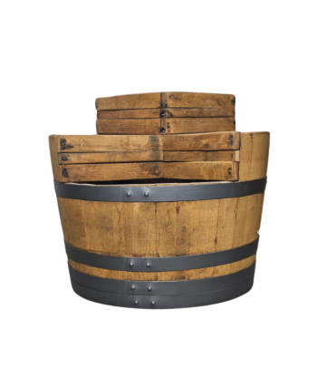 Das Fass wurde zur Reifung von Wein verwendet, daher ist die Innenseite rot gefärbt – dadurch bleibt die Funktionalität über viele Jahre erhalten, und das Eichenholz sorgt für seine Dichtigkeit.
