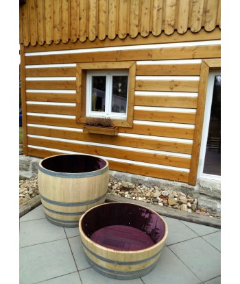 The barrel was used for aging wine, so the inside is colored red - this preserves it for many years of functionality, and the oak wood ensures its tightness.